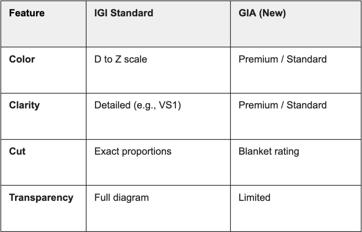 This represents a significant shift. While GIA remains highly respected for natural diamond grading, this new approach for lab-grown diamonds no longer provides the level of transparency that discerning buyers expect.